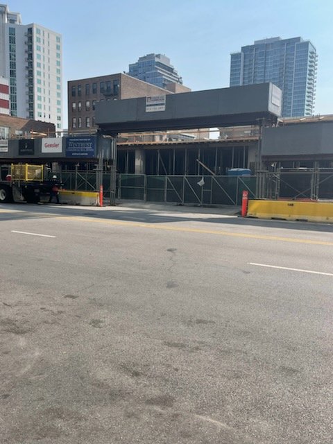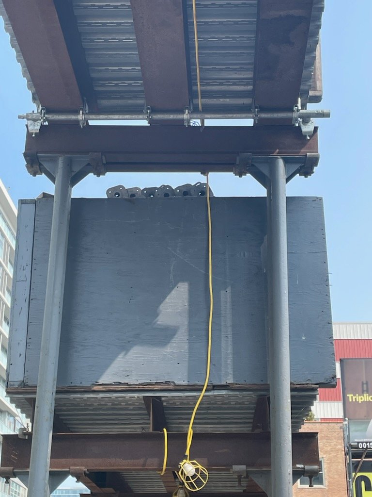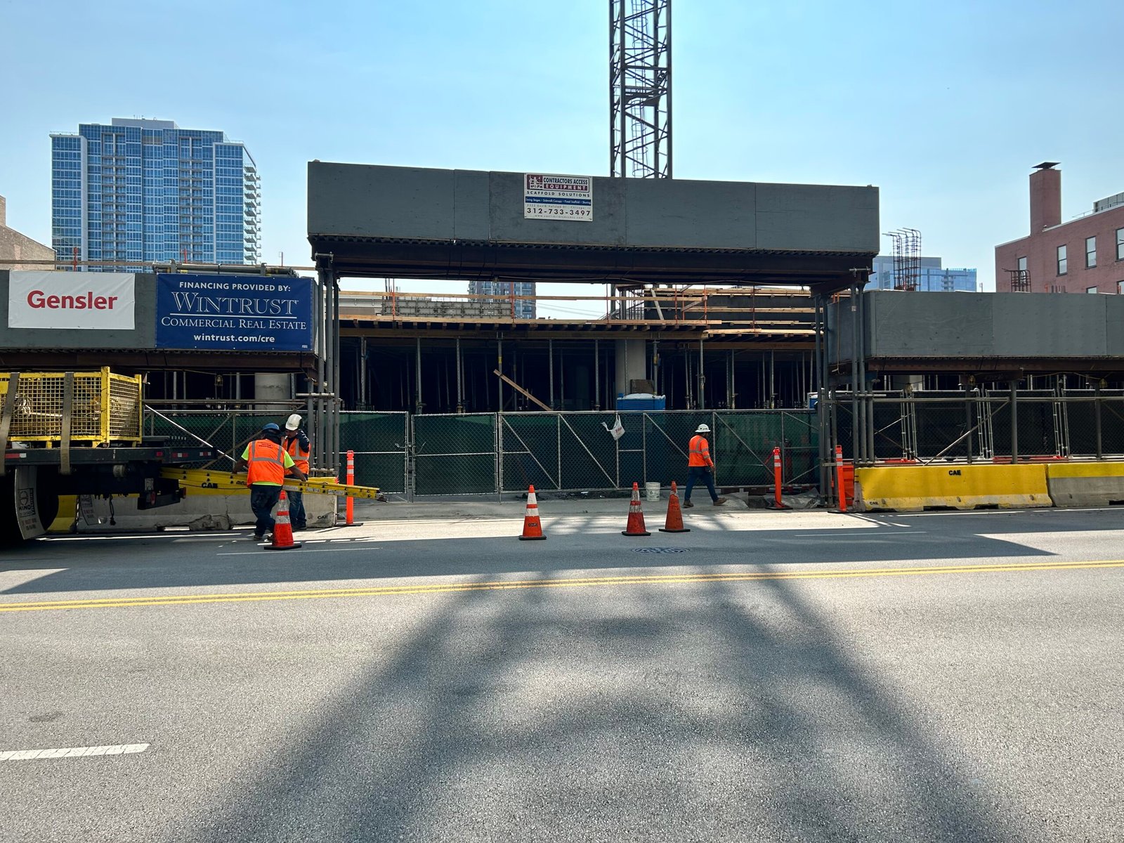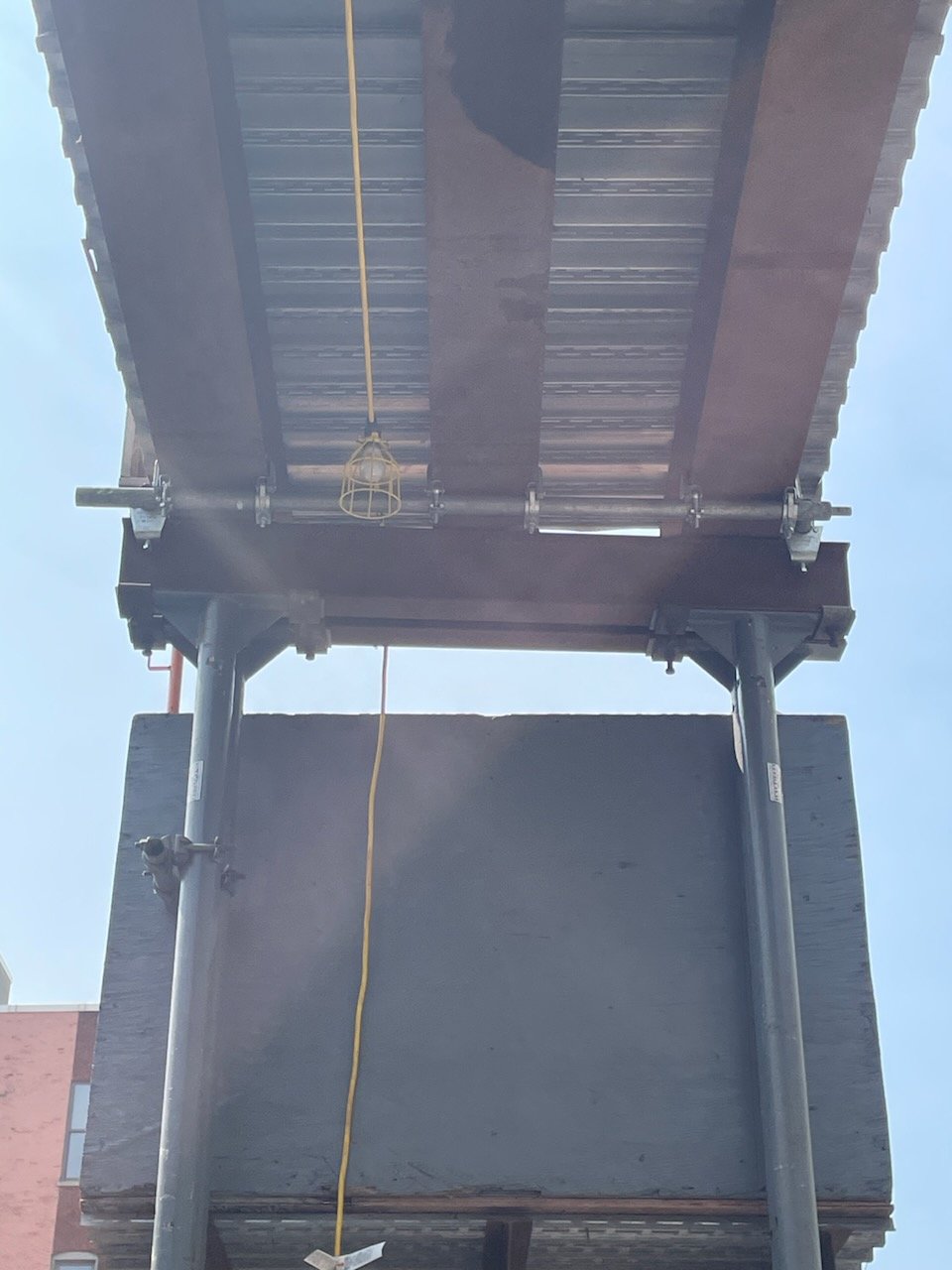CAE erected this ”high boy” style canopy for the entrance to this construction site to protect pedestrians, workers, and equipment.
