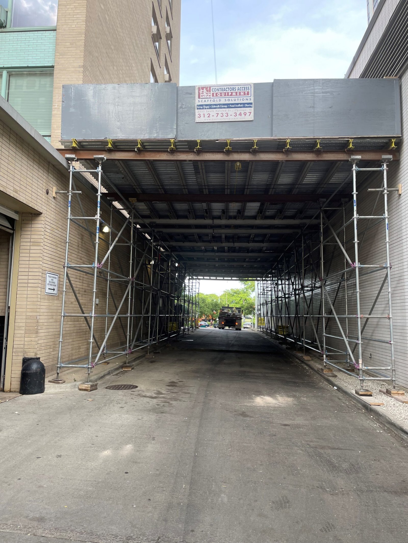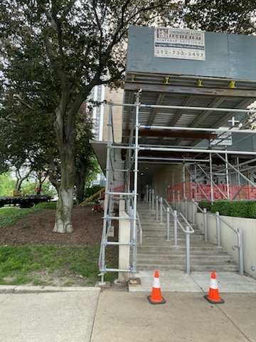 CAE installed several pedestrian canopies onsite so that construction crews could work on the roof overhead.