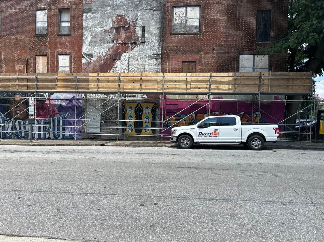 DSS erected overhead pedestrian protection while work was being performed on the exterior of this building.