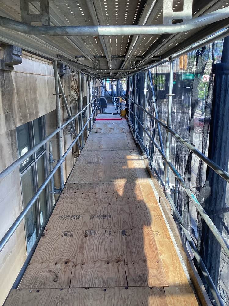 DSS erected scaffolding for a number of contractors on the exterior facade of the building, including masonry, waterproofing, and others.