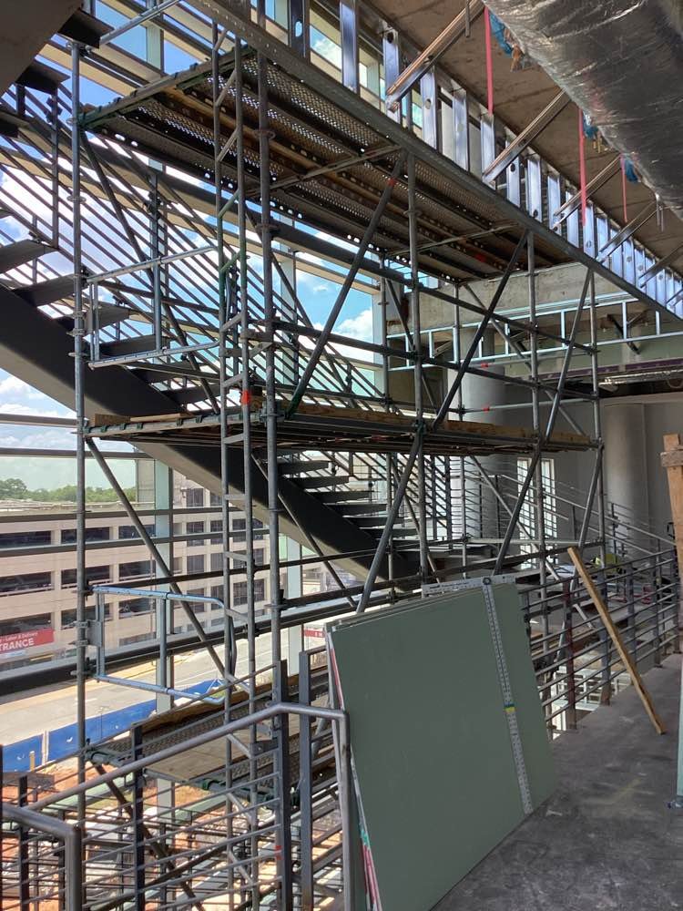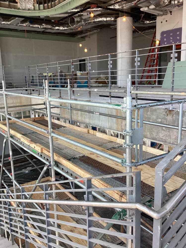 DSS erected scaffolding in the lobby area so that a variety of work could be done on the ceiling and walls.