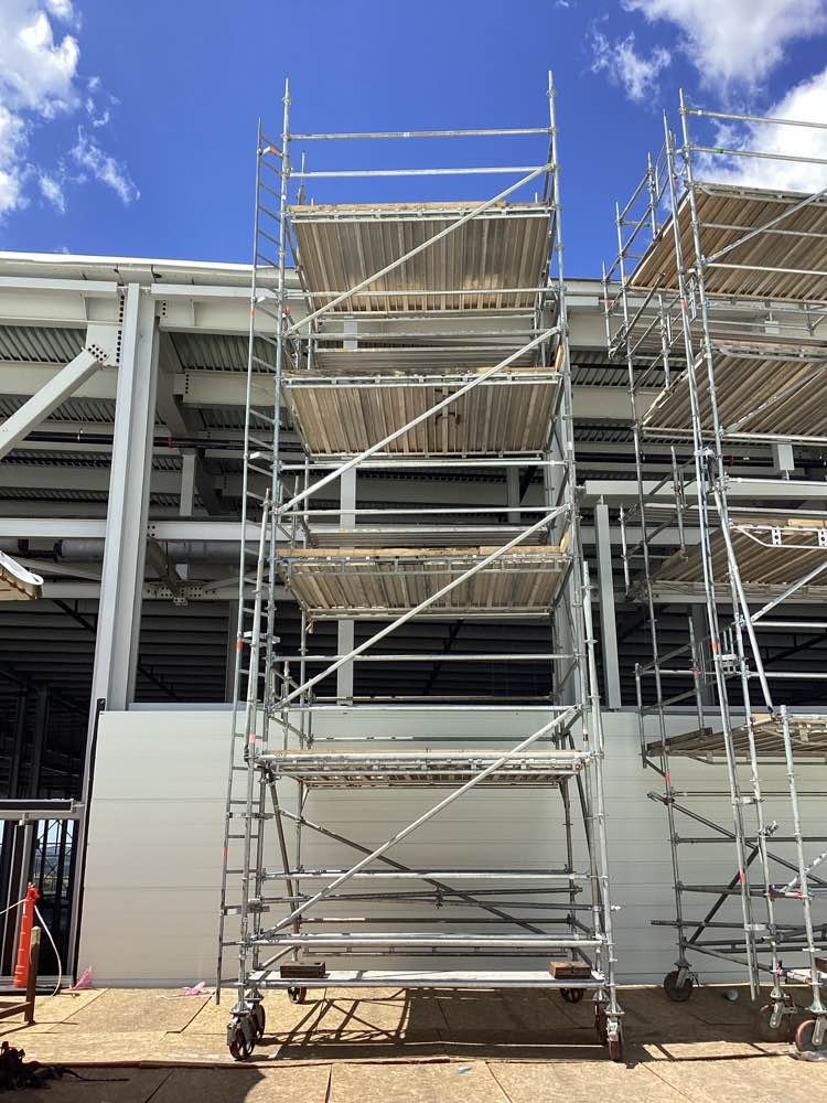 DSS erected a series of rolling scaffolds on the lower roof so the contractor could access the exterior walls of another section of the building.